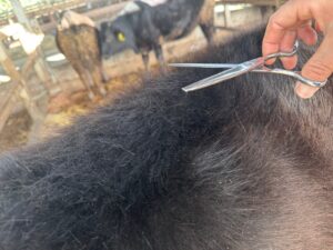 牛さんのヘアスタイル調整中。