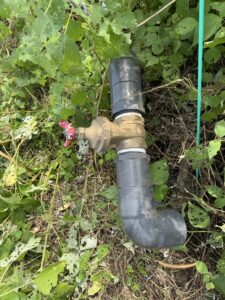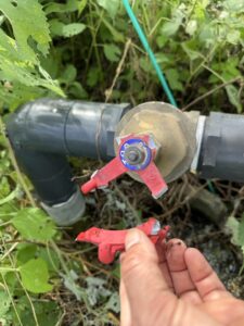 この畦は真ん中くらいに、田んぼ用の蛇口があるから