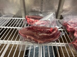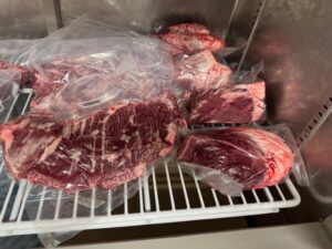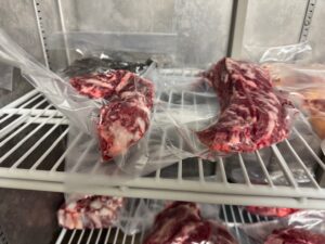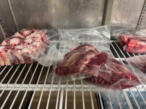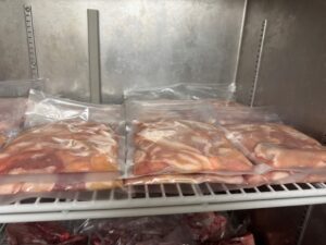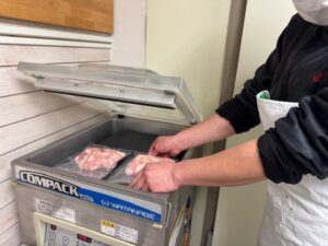 ハラミとかは、すじとか引いて、真空&冷凍。