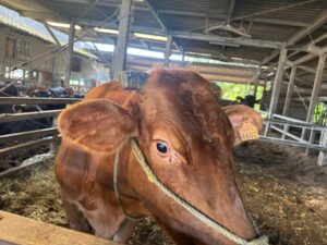 一昨日、1頭のあか牛のお母さんが寝方が悪かったのか、