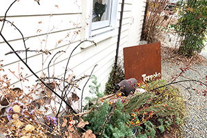 お店前の自作花壇にも牛さんが…!